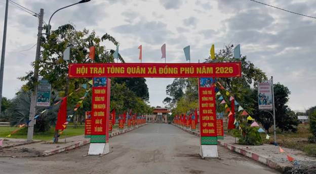Những ngày này, tại xã Đồng Phú, không khí chuấn bị cho Hội trại tòng quân năm 2026 đang diên ra khân trương, sôi nôi và đây khí thê. Khắp nơi rực rỡ sắc đỏ của băng rôn, khẩu hiệu, tất cả đều hướng về ngày hội lớn của tuổi trẻ lên đường bảo vệ Tổ quốc.